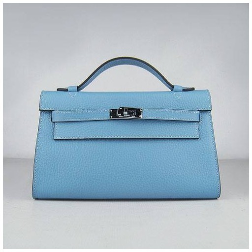 エルメス (HERMES) ケリー22(Kelly 22) 外縫い ブルー×シルバー金具 ケリーバッグ 22002-7