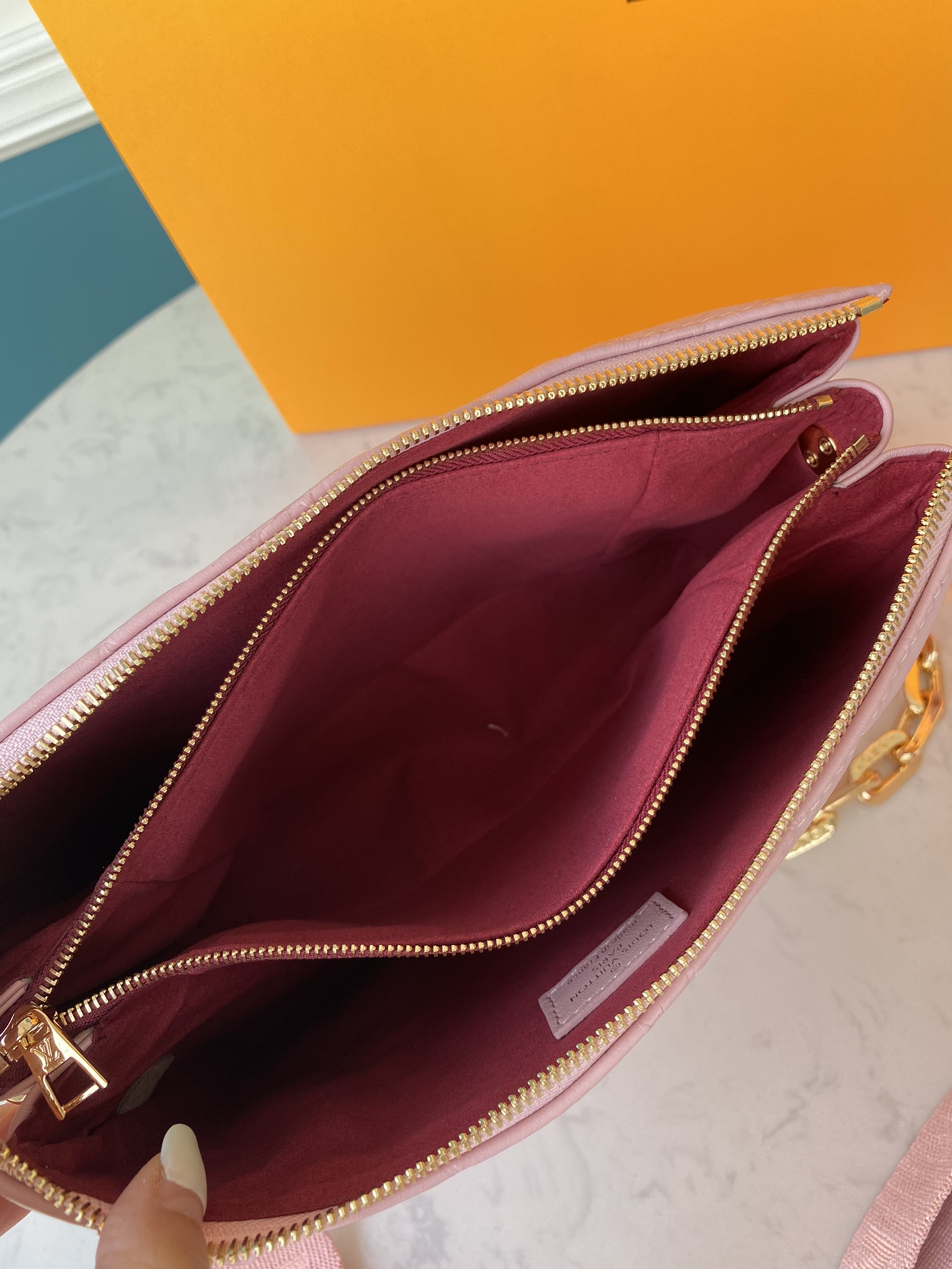 素材:モノグラムパターンをエンボス加工したラムレザー(皮革の種類:羊革)