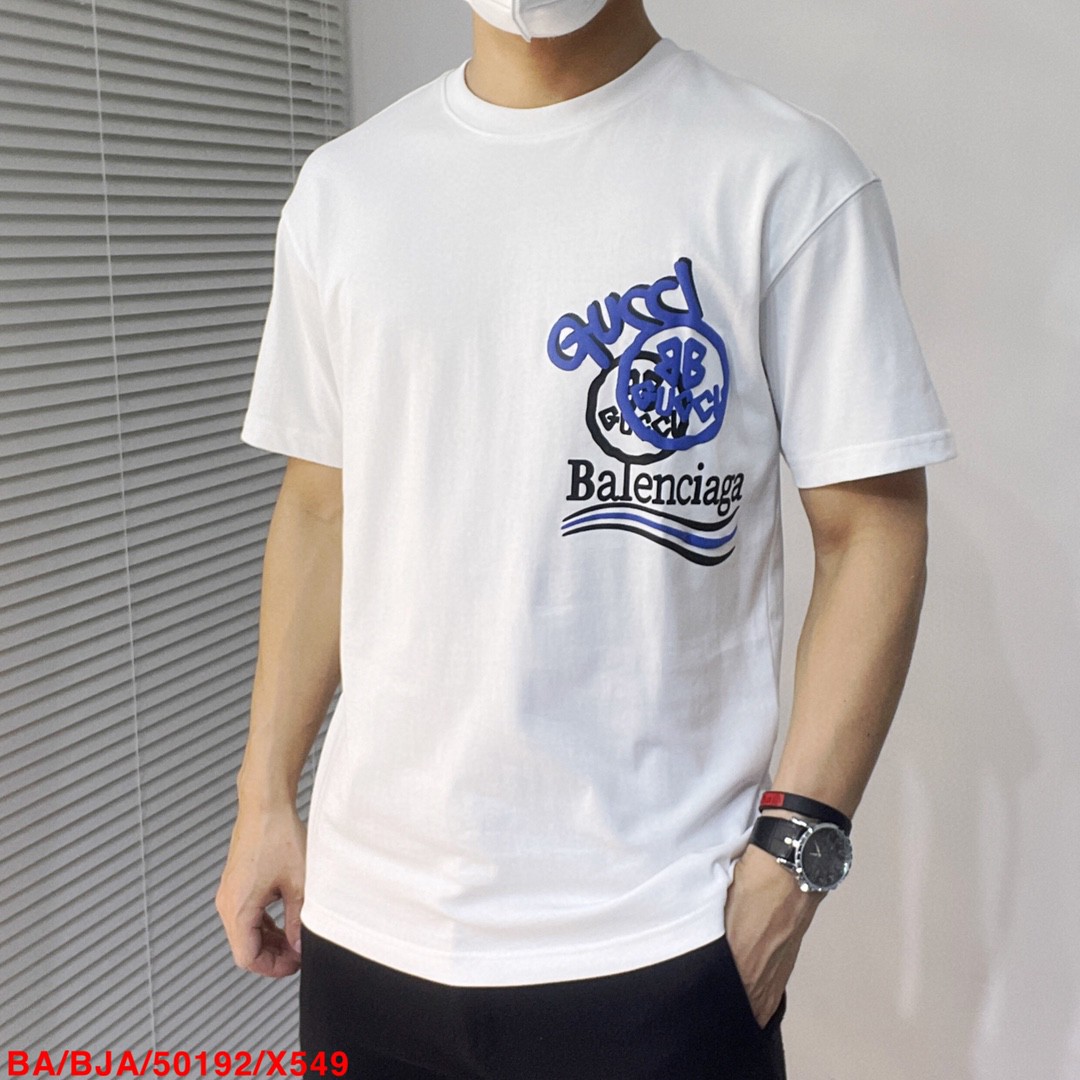 売れ筋商品 バレンシアガ×グッチ 恋人 半袖Tシャツ 半袖トップス 2305CPJ140-BAL4740