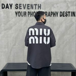 24SS 新品スーパーレプリカ 超激安販売 ミュウミュウ 男女兼着 半袖のシャツ 2405XFP120-MIU1201