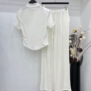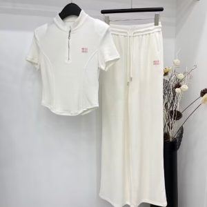 24SS 新品スーパーレプリカ 高品质 ミュウミュウ 女性 ショート丈Tシャツ上下服 2404LJP320-MIU320A