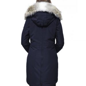 2方向(裏中央を縦方向、フードの開き具合)に調節可能なトンネルフードの周りに着脱式のコヨーテファーを装備。強風から顔を保護できるよう調節可能な固定用ワイヤーを使用