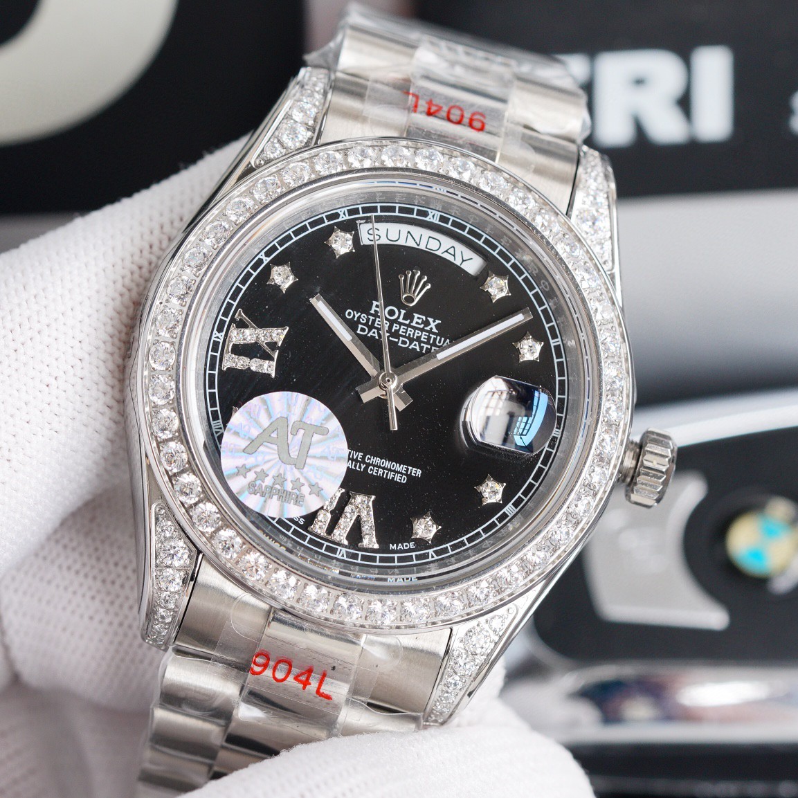 ベゼル:人工ダイヤがすべて埋め込み手作業入り!